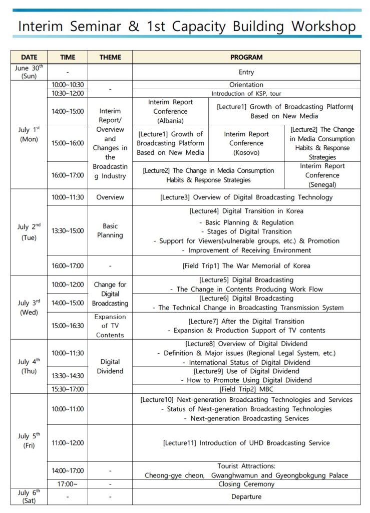 Dans le cadre de la migration de la TNT et de la directive de l’Union internationale des télécoms (UIT) de finaliser la migration avant juin 2020, un workshop a été organisé conjointement entre la Banque Mondiale et RAPA (Korea Radio Promotion Association) du 30 mai au 06 septembre 2019. Ce workshop a vu la participation du Sénégal, du Kosovo et de l’Albanie et a permis de mettre en exergue les difficultés spécifiques à chaque pays dans la mise en place de la transition de l’analogique vers le numérique.