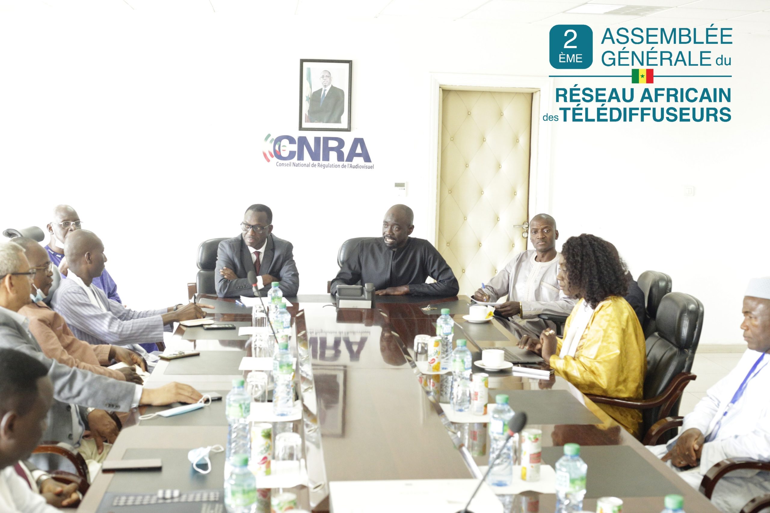 Dans la poursuite de ses visites aux organes, acteurs de l’audiovisuel et institutions de régulation, le Réseau Africain des Télédiffuseurs a été reçu, le vendredi le 6 mai, 2022, par le Président du Conseil National de Régulation de l’audiovisuel du Sénégal, Monsieur Babacar DIAGNE.