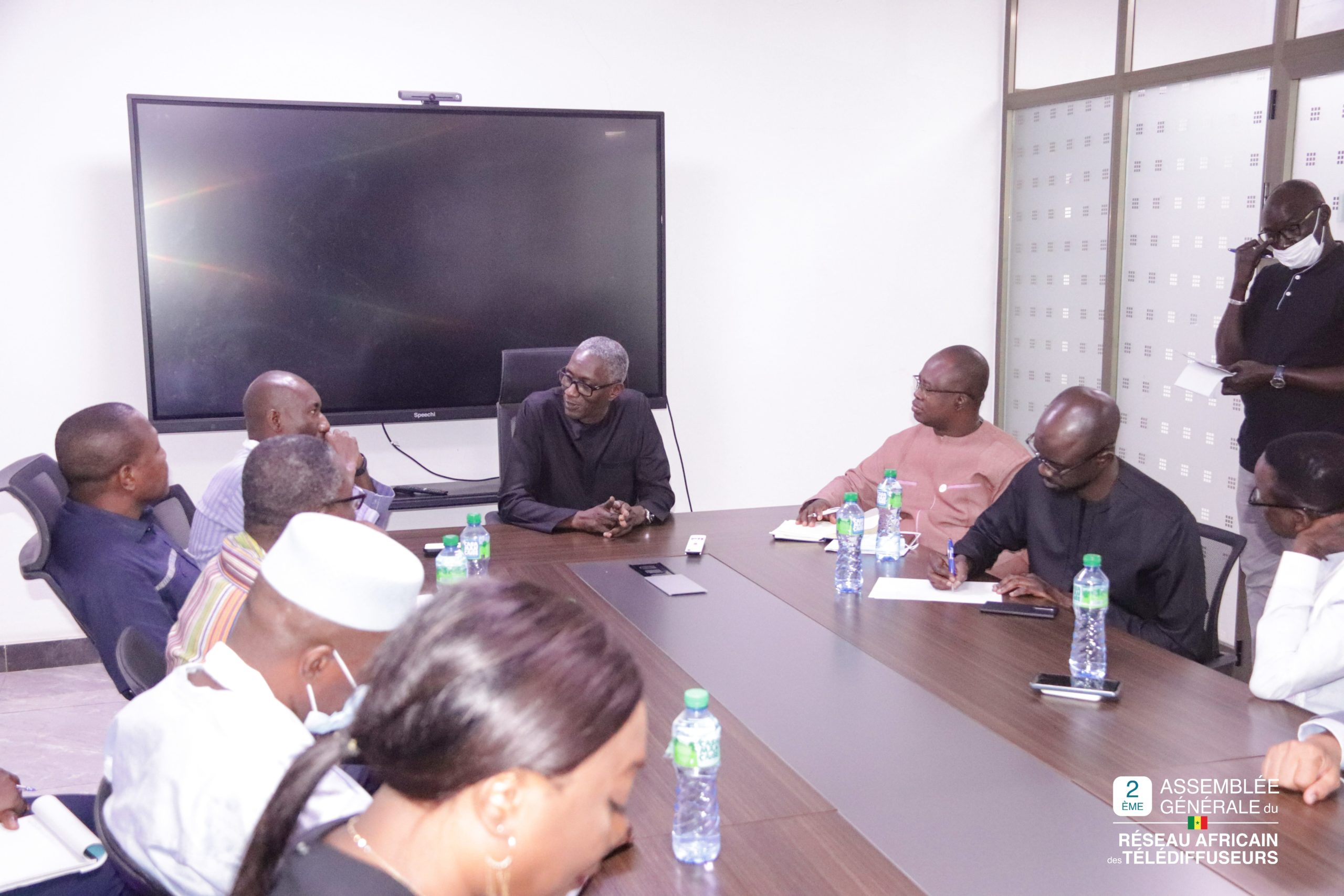 Monsieur Abdoul LY, a reçu une délégation du Réseau Africain des Télédiffuseurs (R.A.T) conduite par M. Amadou Abdoulaye DIOP Directeur général, de la Société de Télédiffusion du Sénégal, (TDS-SA). Cette visite fait à la suite de l’organisation les 5 et 6 mai 2022 de la 2éme Assemblée Générale du R.A.T. à Dakar.